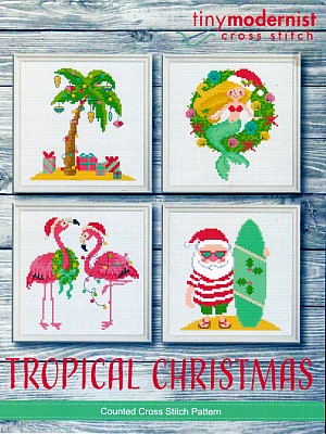4 designs - Palm Tree & Presents, Flamingos & Lights, Mermaid in Wreath, Santa with Surfboard