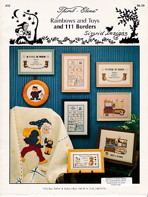111 designs - Mini Motifs, Train, Blocks, Fish, Elephant, Duckly, Football, Car, Pulled Lamb, Clowns, Tops, Puppy Dog, Toy Solider, Ice Cream, Frog, Lion, Mouse, Pony, Cheerleader, Football Player, Hot Air Balloons, Tulips, Heart Wreath, Ballerina, Balloons, Bunny, Bottle, Butterfly, Jack-In-A-Box, Rattle, Ball, Baby Pin, Kitty Cat, Rocking Horse, Teddy Bear, Buggy, Bedroom, Giraffe Baby Record Sampler, A Star is Born Birth Sampler, This is Your Birthday Sampler, Sandman with Lantern, Borders, etc