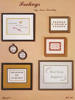 15 designs - Faith - God don't sponsor no flops, Hope - Spring awakens Autumn puts to sleep, Loving you is easier than anything I'll ever do again, Futilty - Golden Rule, Graciousness- Welcome, Delight - Rain stopped & sun came out, Peace - Here Lives Happiness, Frustration - Lord untie me, Appreciation - Thank you, Sincerity - I Love you, Fellowship - Bon Appetit, Desperation- Give weed an inch & it'll take a yard, Friendship, Gratitude, Serenity - Dove in Sky
