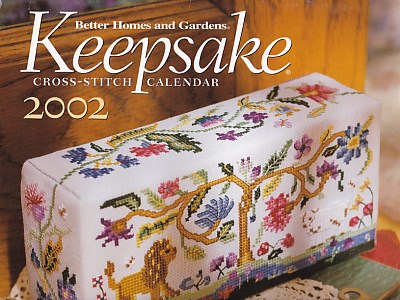13 designs - Dec 2001 / Merry Christmas Sampler, Jan / New Year Motifs & Snowmen Sampler, Feb / Friendship Hearts Pillow, March / Lion & Lamb Brick Cover, April / In My Herb Garden Sampler, May / Love Blooms with Kindness Clipboard, June / Summer Couple - English Garden Sampler, July / Patriotic Yankee Doodle Boy Postcard, August / Nature's Bounty at Farmer's Street Market, Sept / Blackberry Heart Box Lid, Oct / Halloween Band Motifs Sampler, Nov / Harvet Blessings Sampler, Dec / Marching Patchwork Santa