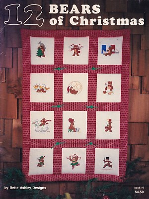 12 designs - A Partridge In A Bear Tree, Turtle Doves, French Hens, Calling Birds, Golden Rings, Geese A Laying, Swans A Swimming, Bears A Milking, Ladies Dancing, Pippers Piping, Loards A Leaping, Bears A Drumming