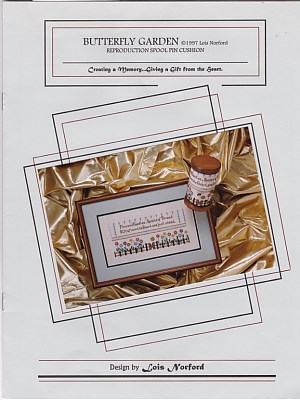 Butterfly Garden Saying / Reproduction Spool Pin Cushion - "Pins and Needles Spools of Thread Gifts from the Heart are just ahead." - 65 x 142