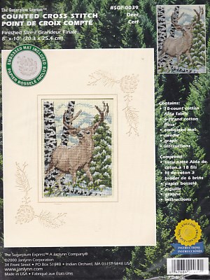 Deer Stag in Pine Forest - New - Beige 18ct fabric, floss, needle, Pine Cones Pre-Embossed Beige Pre-Cut Mat, chart & instructions - 8" x 10"