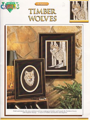 2 designs - Timber Wolves Leaflet - Wolve in Trees Something in the Air / Wolf Portrait - New - Black 14ct fabric, floss, needle, chart & instructions - 125 x 180