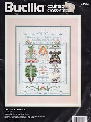 The Doll's Cupboard - Doll Clothes - New - White 14ct fabric, floss, needle, chart & instructions - 11" x 14"