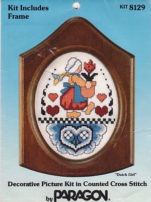 Dutch Girl with Potted Tulip - New - Opened - White 18ct fabric, floss, needle, chart & instructions - 72 x 85