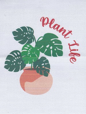 Potted Plant Life Kit - New - Pre-Printed Colored 14ct fabric, floss, needle - 8" x 8"