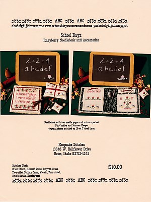 6 designs - Alphabet Sampler, Needle Case, Pin Cushion, Fob, Scissors Keeper, Raspberry Needlebook - Leaflet Only