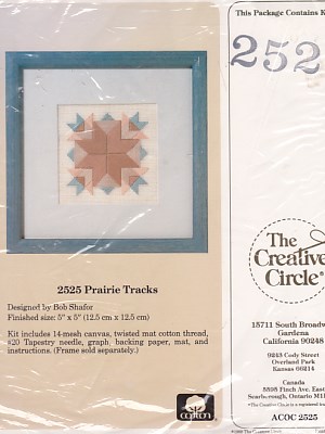 Prairie Tracks Quilt Square - New - White 14ct Canvas, Twisted Mat Cotton Thread, Tapestry Needle, Chart, Backing Paper, Pre-Cut Mat, Long Stitch Embroidery & Instructions - 5" x 5"