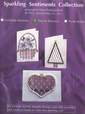 Time for Romance Heart Gift Card - New - Includes White Gift Card with Envelope, Kreinik Metallic threads, needle, Pearl beads, Silver Cording, chart & instructions - 5" x 7"