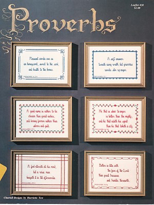 6 designs - Wise Man Keepth Afterwords, Good Name Rather Riches, Slow to Anger, Better Fear Lord Than Treasures, Pleasant Words as Honeycomb, Soft Answer Away Wrath