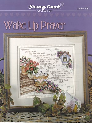 Wake Up Prayer - White Kitten in Flower Pot on Garden Stairs / Birdhouse - 159 x 135