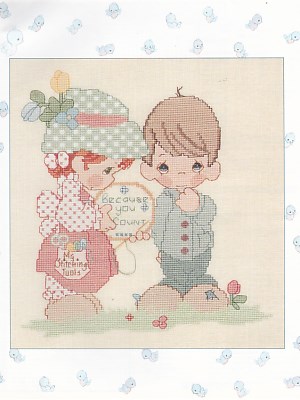 Precious Moments - Celebrating 10 Years - Girl Stitched a Hoop saying "Because you count" for the Boy - 122 x 112