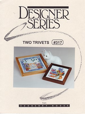 2 designs - Fruit Basket Trivet of Jam & Preserves, Sleeping Kitty Cat in Potted Flowers Trivet