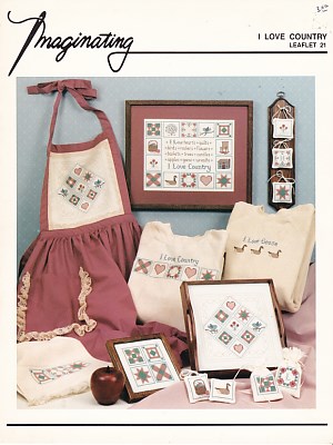 2 designs - I Love Country Sampler - 143 x 114, Country Quilt Patterns Trivet / Apron - 99 x 99