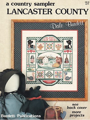 Country Lancaster County Sampler - Quilt Patterns / Amish Couple Dolls / Couple Geese / Farm Scene / Butter Churn / Baskets / Watermelon - 148 x 168