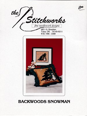 Backwoods Snowman in the Forest Trees - Includes Moon Button - 83 x 73