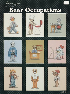18 designs - Reading Writing Bearithmetic - Teacher, Flo Bear - Waitress, J. Paul Teddy - Salesman, Secreteddy, Hearternal Instincts - Mother, Bear-be-que Expert - Grill Chef, The Little House on the Bearie Farmer, Farmbear's Wife, Trapbear John M.B. - Doctor, Clara Bearton - Nurse, Bear-a-tone Singer Choir, Bearshoi Ballet, Grin and Bear It Photographer, Salvabear Dali Artist, Military U.S. Army Bear, U.S. Navy Bear, Go Bear Pyle USMC, Air Bear USAF, Lt. Bearetta - Crossing Guard