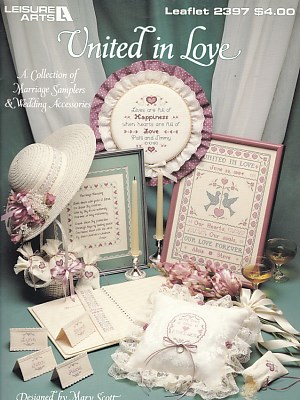 5 designs - Heart Border Bookmark, With This Ring I Thee Wed Ring Bearer Pillow, Marriage Blessing Prayer, Hoop Happiness Sampler, United In Love Sampler - Blue Birds & Hearts
