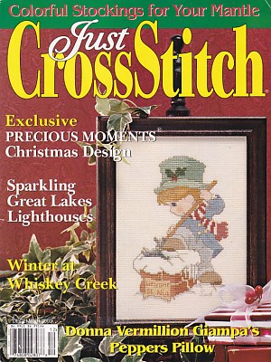 17 designs - Toile Three Fruit Ornaments, Merry & Bright Sampler, Advent Angel Face Ornament, Nordic Stocking Cuffs, Great Lakes Lighthouses Set, Christmas Angel with Harp, Run Run Rudolph - Jump Over the Tree, Santa Finding the Way with Lantern, Sparkling Ribbon Wreath, Ships by Moonlit Bay Scene, Just In the Nick of Time - Precious Moments, Winter at Whiskey Creek Scene, Peppers Pillow, My Mom's Christmas Motifs Sampler, etc