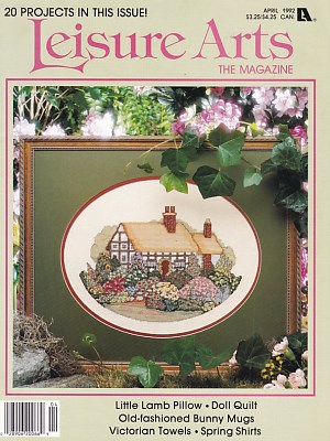 20 projects - Jelly Bean Bunny Waste Canvas Sweatshirt by Kathie Reuger, Spring English Cottage Scene by Lorriane Birmingham, Country Cats Series - Benjamin Yellow Tabby in his Straw Bed with Blue Blanket, Victorian Floral Towels - Tulips / Roses / Tiny Heart & Buds / Buds Border by Ann Townsend, Stitch-A-Mug - Girl Bunny / Boy Farmer Bunny by Sandy Gervais, Mini Doll Basket Quilt Hanging, Applique Hearts & Flowers Sweatshirts, Crochet Little Lamb Toy, etc