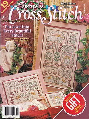 19 designs - Monday's Child Sampler, Needle Artists Keep Thier Friends In Stitches Sampler, Basket Border, Couple in Twin Hearts Embellishment, Lady Collecting Daffodils in Garden Sampler, Greatest Is Love Motfs Sampler, Roses & Hearts Border, Cherubs & Pansies Afghan / Pillow, Scandinavian Deers & Snowflake Bellpull, Lion & Lamb Border / Sampler, Sheep Jumping Over the Sleeping Lion Door Hanger, Tiny Clowning Faces Shoes / Bib Clips