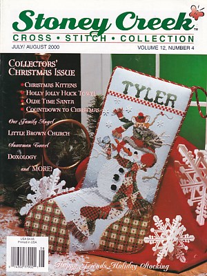 10 designs - Little Brown Church in Winter Plate, Our Family Patchwork Angel, Children's Corner - 2000 Ornament, Doxology Song Sampler - Animals & Music Notes, 2000 Ornament Specialty Stitches - Bargello, Two Christmas Kittens Portraits in Holly & Ribbons, 2000 Santa Collectors Afghan Series - Olde Time Santa with Rocking Horse & Toys, Snowman with Free Towel, Chritmas Happy Friends Holiday Stocking - Snowman with Bird & Mouse, Holly Jolly Mini Stocking Huck Towel - Teddy Bear & Candy