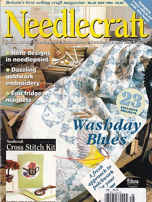 23 designs - Flowers in Watering Can, Healing Harvest Sampler - Herbs by Stella Edwards, Greek Keys Needlecase by Rebecca Bradshaw, Celtic Charm Gold Knots Shoe Buckles, Passion of Flowers Placemat by Hilda Martin, Assisi Alphabet Letters Initials, Late Medieval Lady Blackwork by Barbara Phillips, Linen & Lace Doliy, Box of Delights, Pansies Needlepoint Pincushion by Sandra Hardy, Faces Refrig Magnets - Bobby Banana / Ollie Onion / Penelope Pear / Malcolm Mushroom / Sally Strawberry / Cathy Carrot, Washday Blues Quilt by Jane Austin